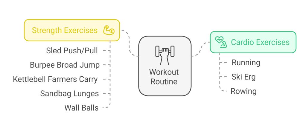 • High-Intensity Intervals: Integrate HIIT workouts to build your anaerobic capacity and prepare for the quick transitions between running and functional stations.